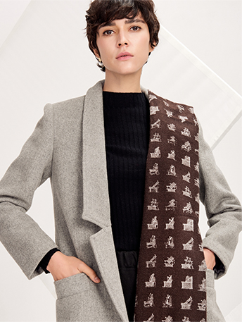 作品以漢代織機為靈感來源,將漢代織機的構造形象呈現在絲巾上。先人們兩千多年前便已經可以在完全以收工的基礎上創作出復雜紋樣的絲織品,智慧和工藝彌足珍貴,具有著濃濃的文化內涵。